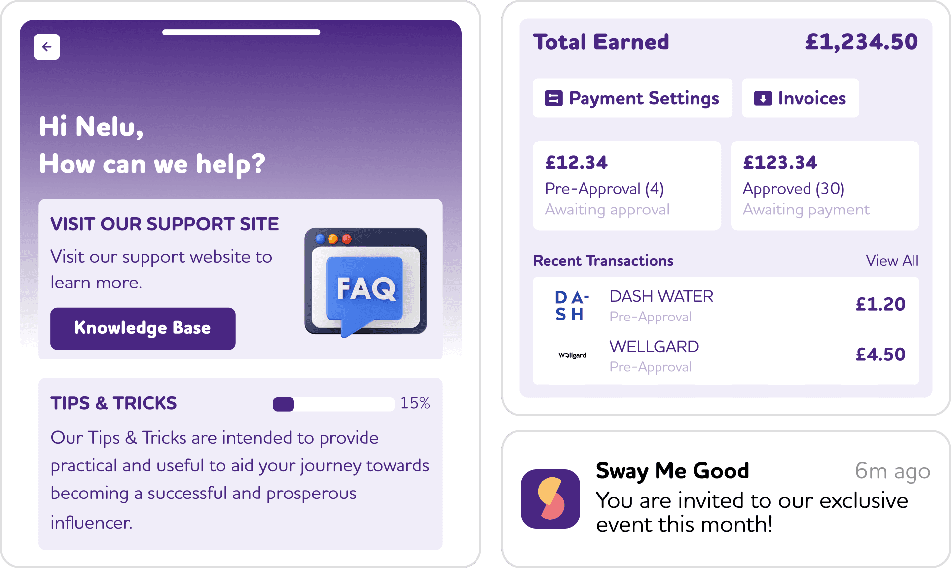 Qualifying influencers on Sway Me Good are able to join our different forums, share feedback directly, get early insights into new features and invites to training and events.