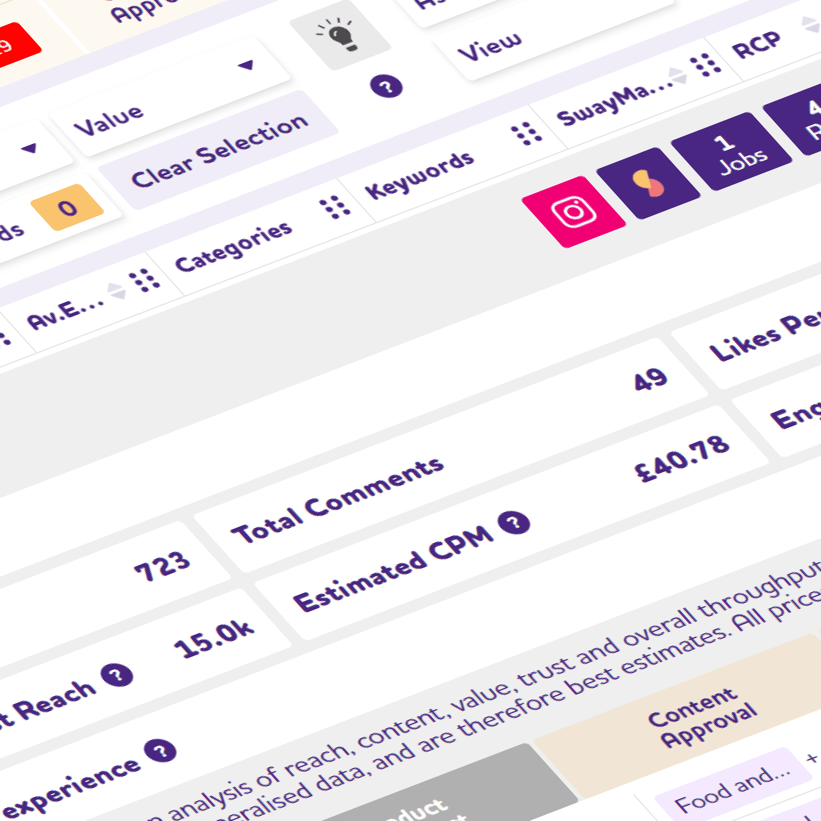 Use our analytics and reporting suite to report and measure the success of your campaigns with Sway Me Good. Metrics such as CPM, Average Engagement, Comments, Likes and more.