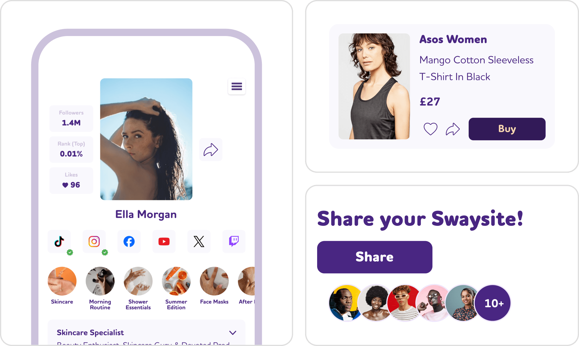 Unlike other tools, SwaySite doesn’t lock you into a limited list of brands. You can feature products from anywhere online, track your performance in real time and even add links to your socials, blog, or YouTube.